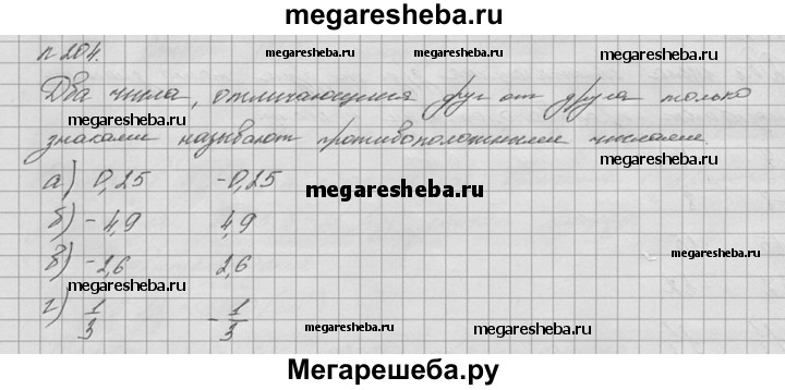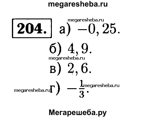 204. Найдите число, противоположное числу: а) 0,25; б) -4,9; в) -2,6; г) 1/3.