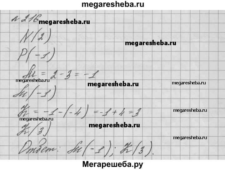216. Точка М при перемещении на 3 перешла в точку N(2), а точка К при перемещении на -4 перешла в точку Р(-1). Найдите координаты точек М и К.