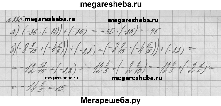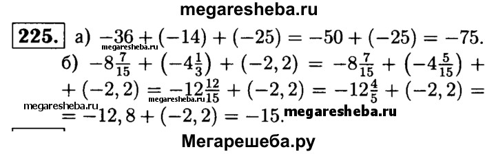 225. К сумме: а) -36 и -14 прибавьте -25; б) -8*7/15 и – 4*1/3 прибавьте -2,2.