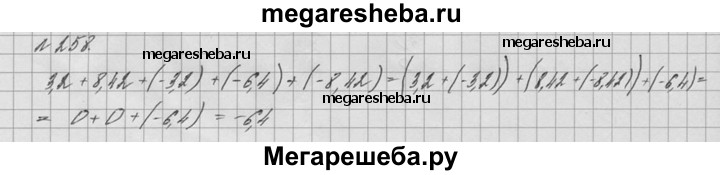 258. Сложив противоположные числа, найдите значение выражения 3,2 + 8,42 + (-3,2) + (-6,4) + (-8,42).