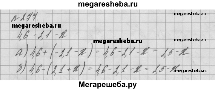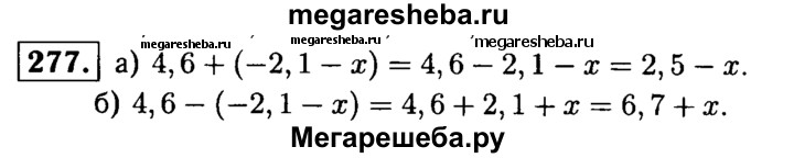 277. Заключите в скобки два последних слагаемых в выражении 4,6 - 2,1 - х, поставив перед скобками: а) знак «+»; б) знак «-».