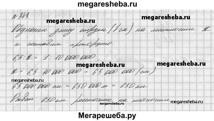 343. На карте, масштаб которой 1:10 000 000, длина отрезка между двумя пунктами равна 6,5 см. Каково расстояние между этими пунктами на местности?