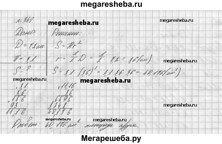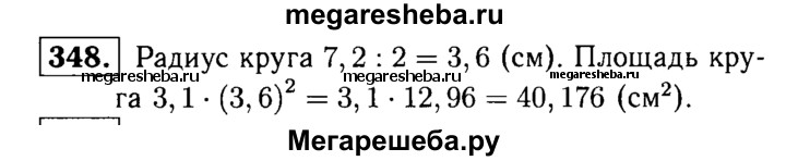348. Найдите площадь круга, диаметр которого 7,2 см. (Число π округлите до десятых.)
