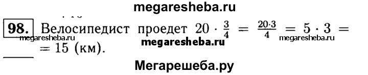 98. Какое расстояние проедет велосипедист за 3/4 ч, если будет ехать со скоростью 20 км/ч?