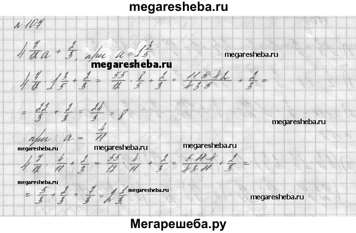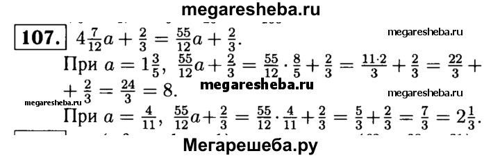 107. Найдите значение выражения 4*7/12а + 2/3, если а = 1*3/5; a = 4/11.