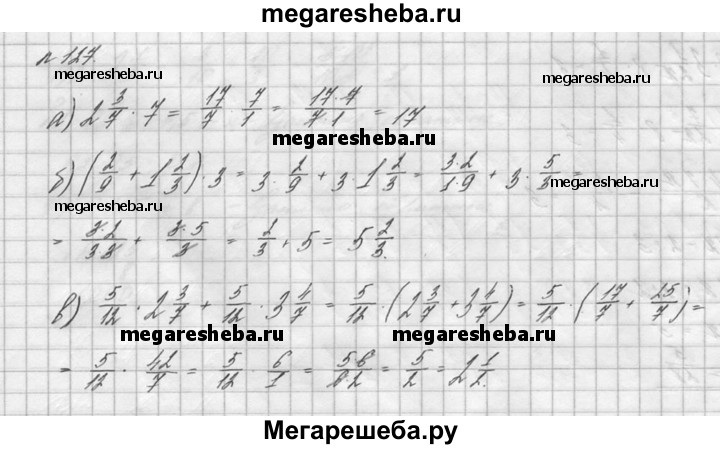 127. Найдите значение выражения: а) 2*3/7 * 7; б) (2/9 + 1*2/3) * 3; в) 5/12 * 2*3/7 + 5/12 * 3*4/7.