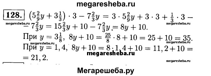 128. Найдите значение выражения: (5*2/9 + 3*1/3) *3 – 7*2/3у, если у = 3*1/8; у = 1,4.