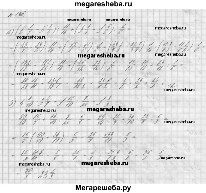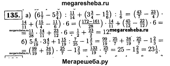 135. Выполните действия: а) (6*1/7 – 5*3/4) : 11/14 + (3*3/4 – 1*5/6) :1/6; б) 5*4/19 * 3*4/7 + 1*15/19 : 7/25 – 1*2/3.