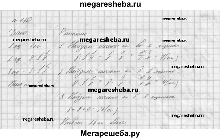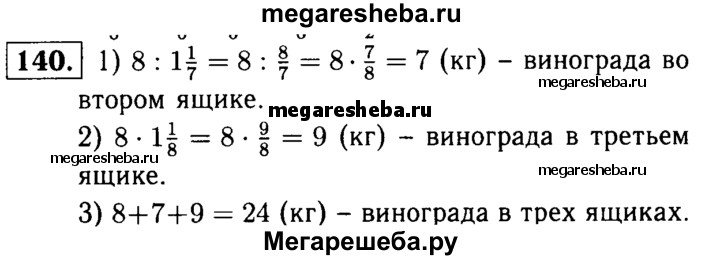 140. В первом ящике 8 кг винограда, что в 1*1/7 раза больше, чем во втором, и в 1*1/8 раза меньше, чем в третьем. Сколько килограммов винограда в трех ящиках?
