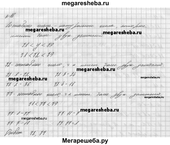 16. Найдите два составных числа у, которые удовлетворяют неравенству 71 < у < 79.