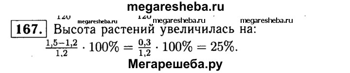167. Высота растения увеличилась с 1,2 дм до 1,5 дм. На сколько процентов увеличилась высота растения?