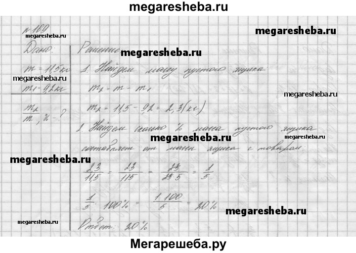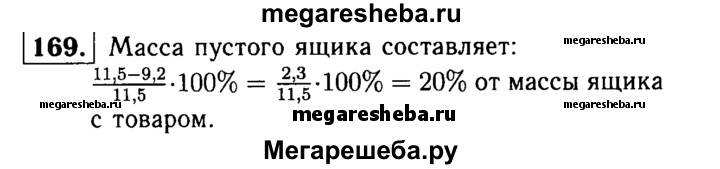 169. Масса ящика с товаром 11,5 кг. Масса товара 9,2 кг. Сколько процентов масса пустого ящика составляет от массы ящика с товаром?