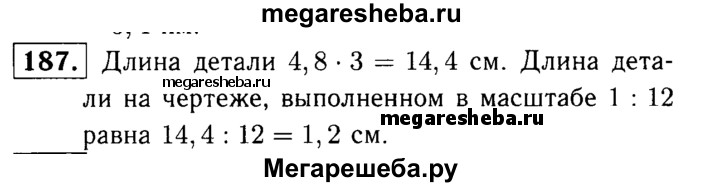 187. Деталь на чертеже, выполненном в масштабе 1:3, имеет длину 4,8 см. Какую длину будет иметь эта же деталь на чертеже, выполненном в масштабе 1:12?