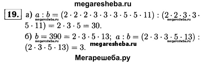 19. Найдите частное от деления числа а на число b, если: а) а = 2*2*2*3*3*3*5*5*11, b = 2*2*3*3*5*11; б) а = 2*3*3*5*13, b = 390.