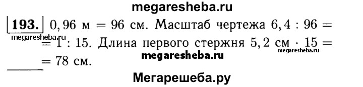 193. На чертеже в одном и том же масштабе изображены два стержня. Первый на чертеже имеет длину 5,2 см, а второй 6,4 см. Какова длина первого стержня в действительности, если действительная длина второго стержня 0,96 м?