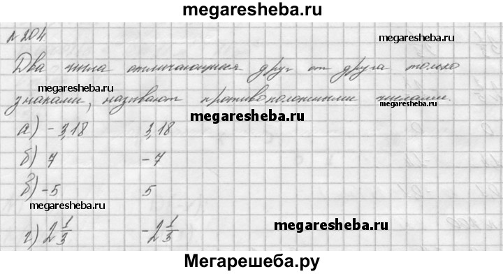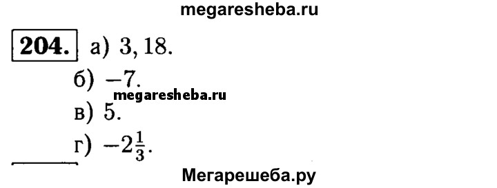 204. Запишите число, противоположное числу: а) -3,18; б) 7; в) -5; г) 2*1/3.