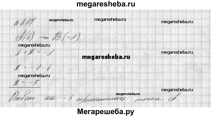 217. При перемещении точка А(4) перешла в точку В (-1). Чему равно перемещение точки А?