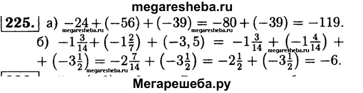 225. К сумме: а) -24 и -56 прибавьте -39; б) -1*3/14 и -1*2/7 прибавьте -3,5.
