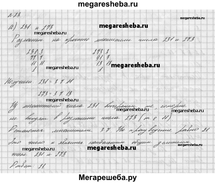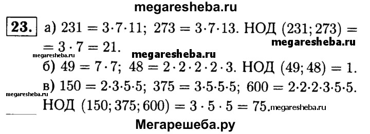 23. Найдите наибольший общий делитель чисел: а) 231 и 273; б) 49 и 48; в) 150, 375 и 600.