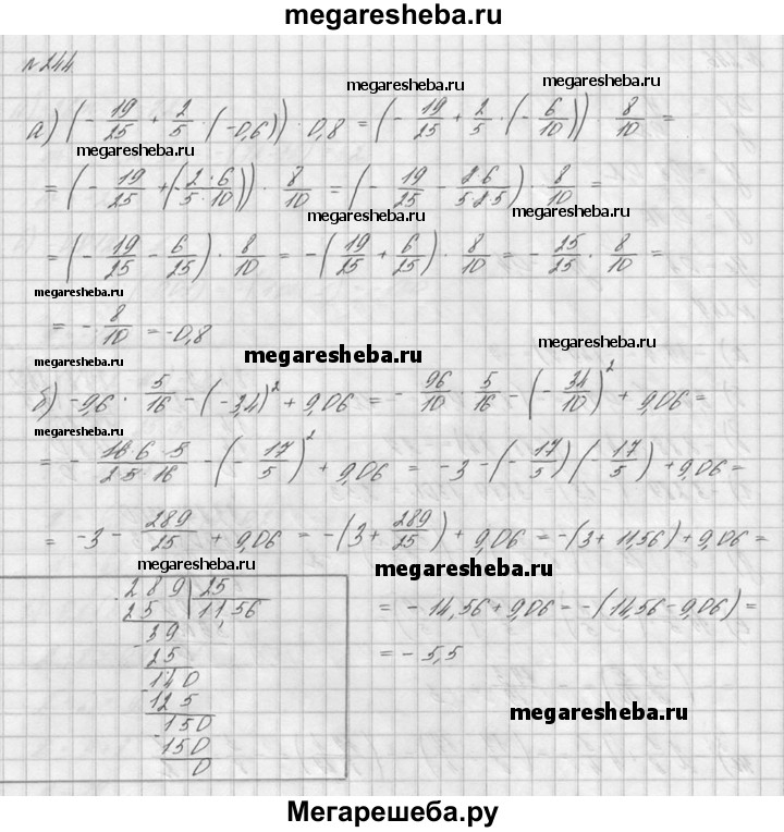 244. Выполните действия: а) (-19/25 + 2/5(-0,6))8; б) -9,6 * 5/16 - (-3,4)2 + 9,06.