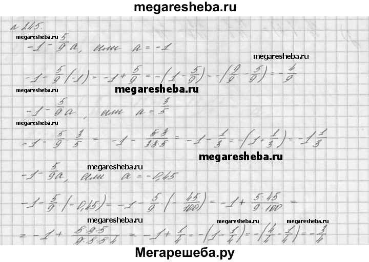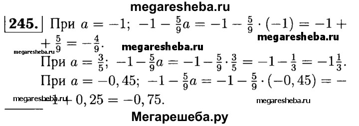 245. Найдите значение выражения -1 - 5/9а, если а =-1; а = 3/5; а = -0,45.
