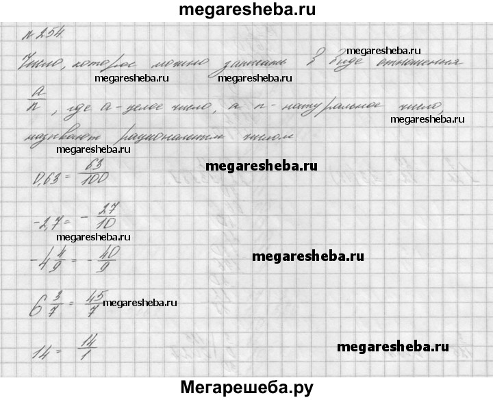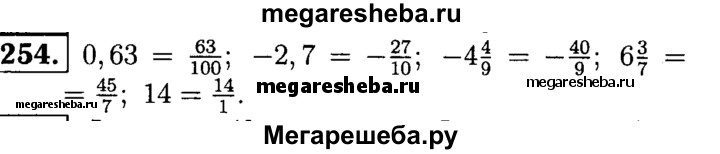 254. Покажите, что числа 0,63; 2,7; —4*4/9; 6*3/7; 14 являются рациональными.