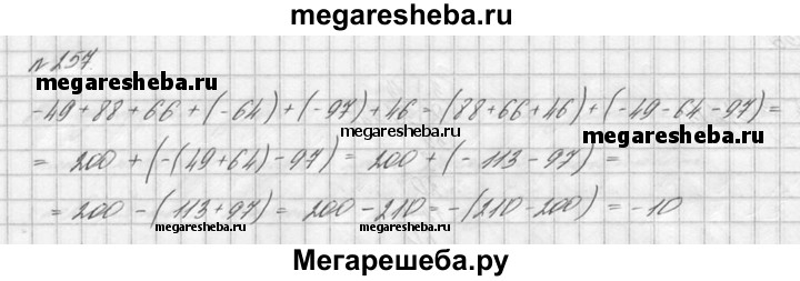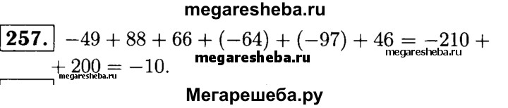 257. Сложив отдельно положительные и отдельно отрицательные числа, найдите значение выражения -49 + 88 + 66 + (-64) + (-97) + 46.