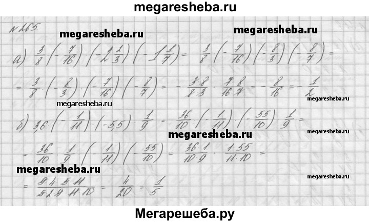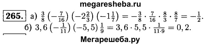 265. Выполните умножение, выбрав удобный порядок вычислений: а) 3/8(-7/16)(-2*2/3)(-1*1/7); б) 3.6(-1/11)(-5.5)1/9.