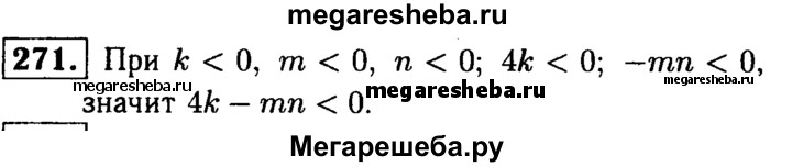 271. Положительным или отрицательным числом является значение выражения 4k - mn, если k, m и n — отрицательные числа?