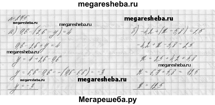 275. Решите уравнение: а) 9,6 - (2,6 - у) = 4; б) -4,2 + (х - 5,8) = 2,5.