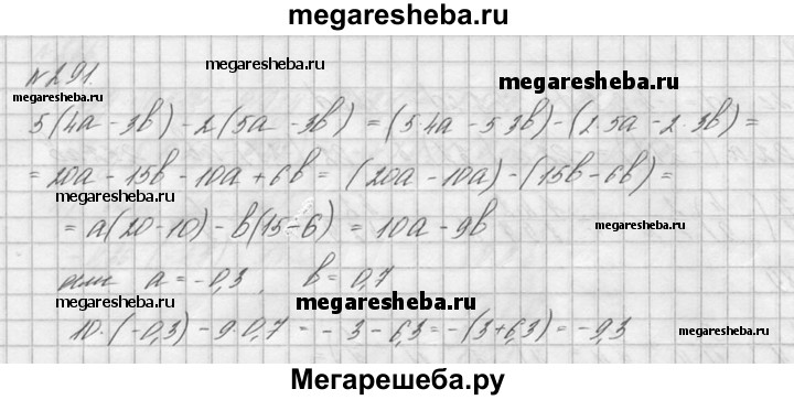 291. Найдите значение выражения 5(4а – 3b) - 2(5а – 3b), если а = -0,3, b = 0,7.