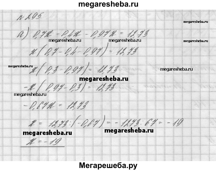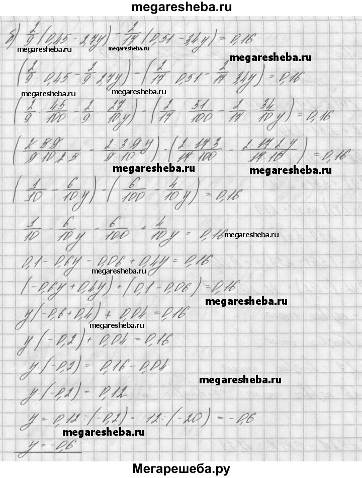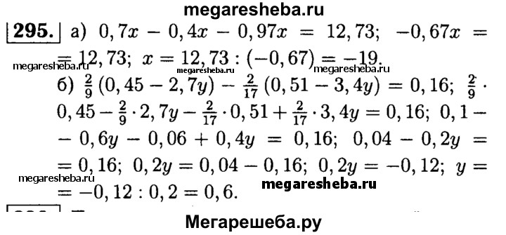 295. Решите уравнение: а) 0,7x - 0,4х - 0,97x = 12,73; б) 2/9 (0,45 - 2,7у) – 2/17(0,51 - 3,4у) = 0,16.