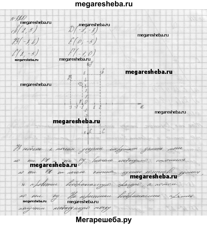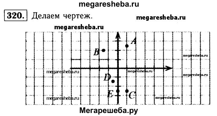 320. Постройте в координатной плоскости точки А(2; 5), В(-3; 4), С (2; -5), D (-1; -3), Е(0; -5), F(-1; 0).