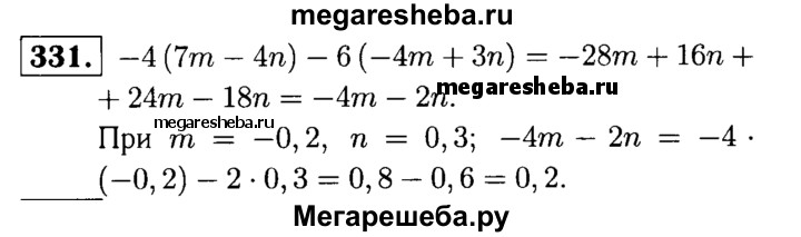331. Найдите значение выражения -4(1m – 4n) - 6(-4m + Зn), если m = 0,2, n = 0,3.