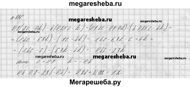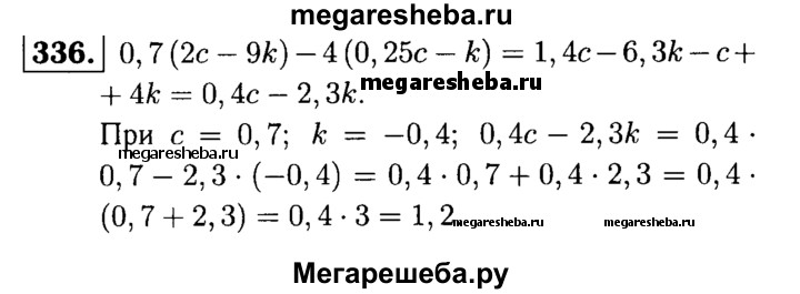 336. Найдите значение выражения 0,7(2с - 9k) - 4(0,25с - k), если с = 0,7 и k = -0,4.