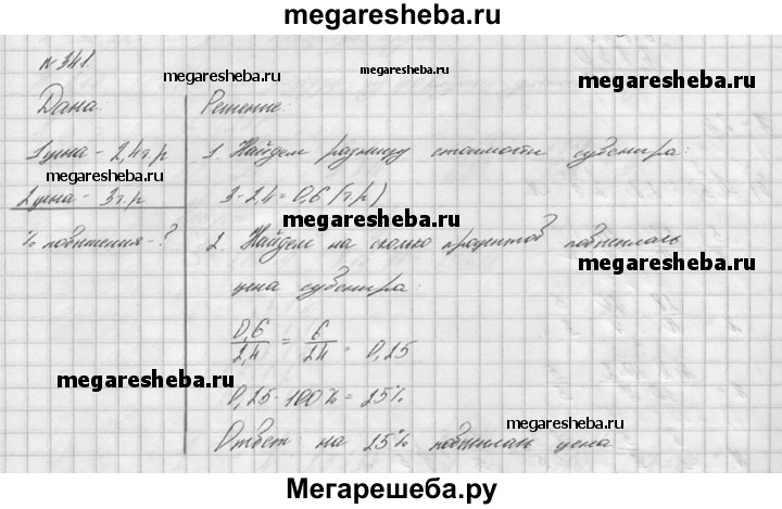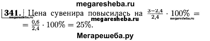 341. Цена сувенира повысилась с 2,4 тыс. рублей до 3 тыс. рублей. На сколько процентов повысилась цена сувенира?