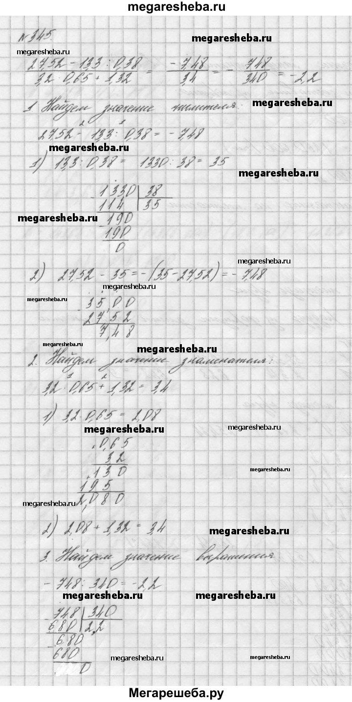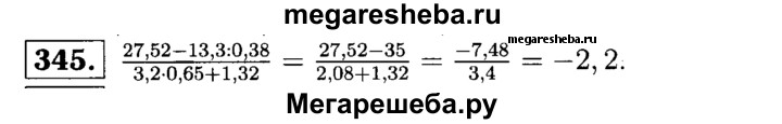 345. Найдите значение выражения 27,52 - 13,3 : 0,38 / 3,2 * 0,65 + 1,32.