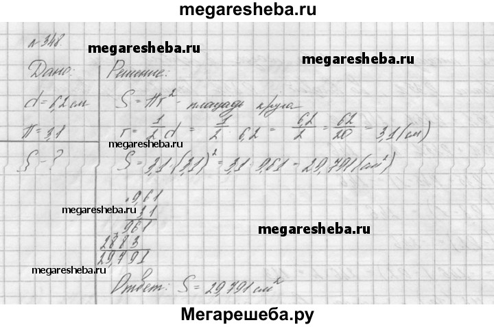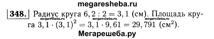 348. Найдите площадь круга, диаметр которого 6,2 см. (Число π округлите до десятых.)