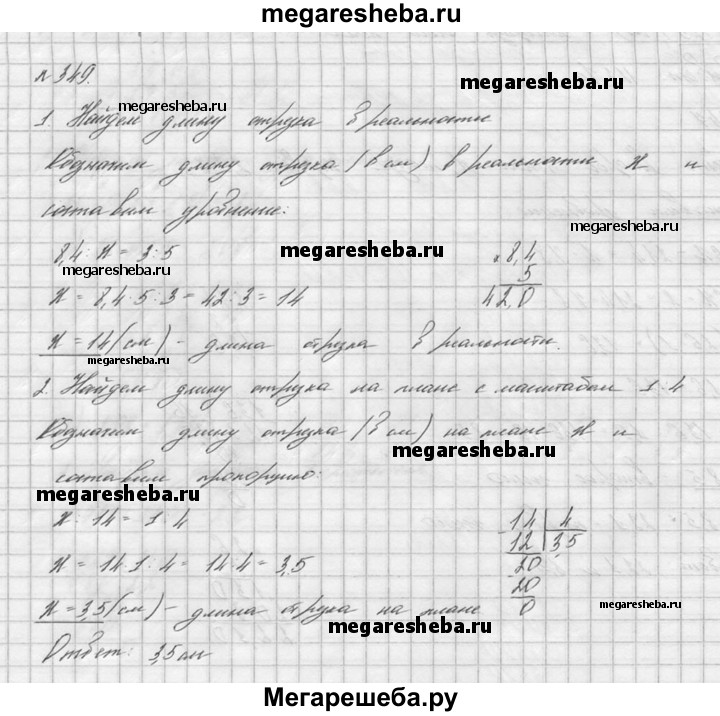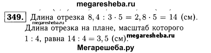 349. На плане, масштаб которого 3:5, отрезок имеет длину 8,4 см. Какую длину будет иметь этот отрезок на плане, масштаб которого 1:4?