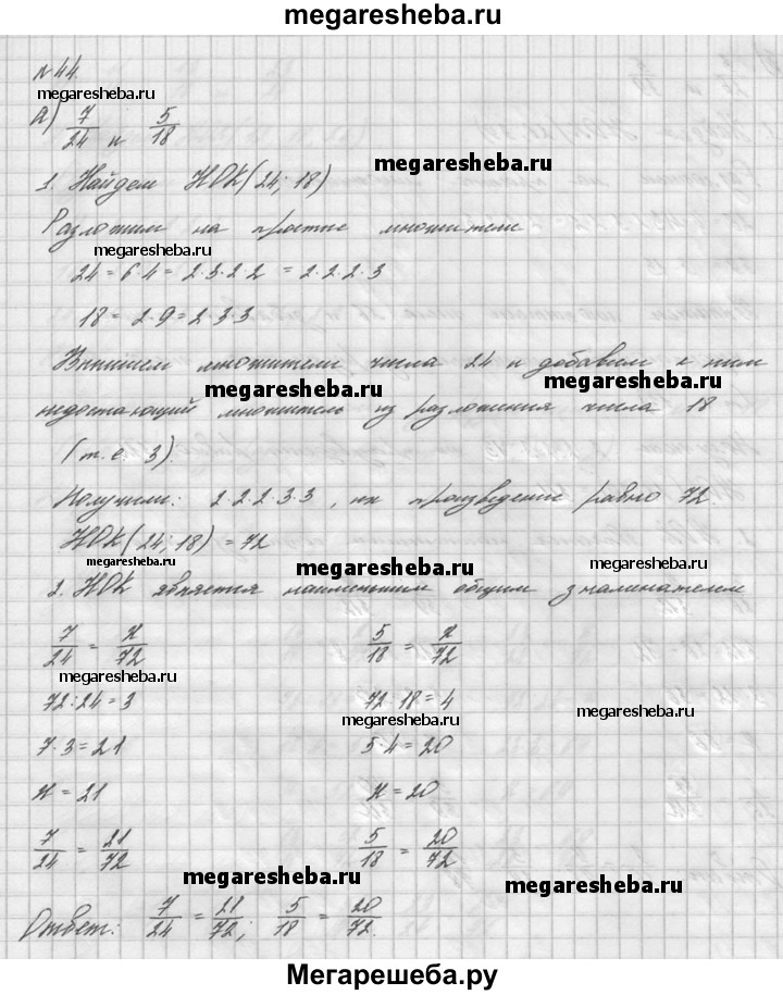 44. Приведите к наименьшему общему знаменателю дроби: а) 7/24 и 15/18; б) 3/26 и 5/39; в) 11/12, 13/18 и 23/24.