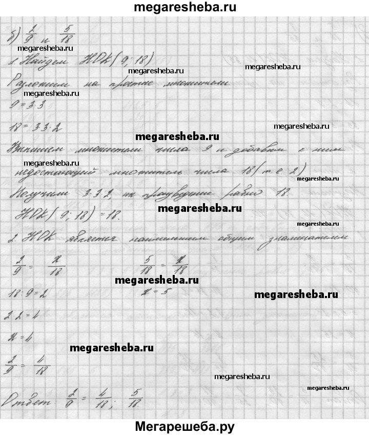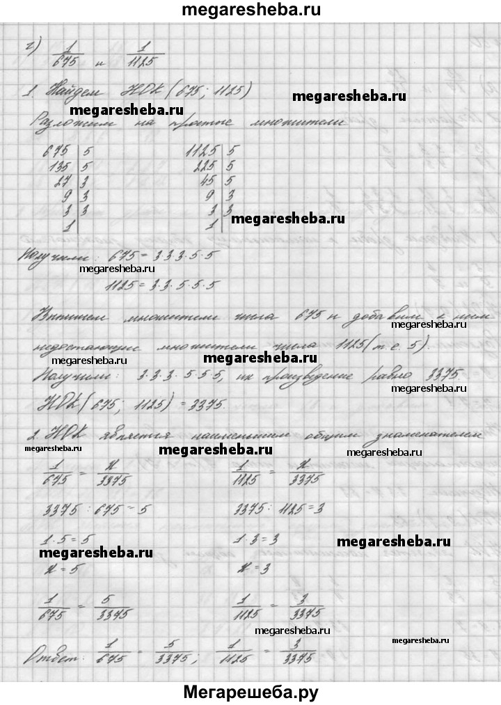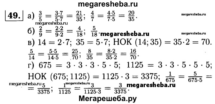 49. Приведите к наименьшему общему знаменателю дроби: а) 3/5 и 4/7; б) 2/9 и 5/18; в) 5/14 и 8/35; г) 1/675 и 1/1125.