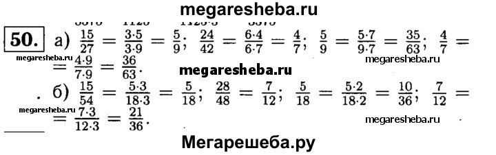 50. Приведите дроби к наименьшему общему знаменателю, предварительно сократив их: а) 15/27 и 24/42; б) 15/54 и 28/48.