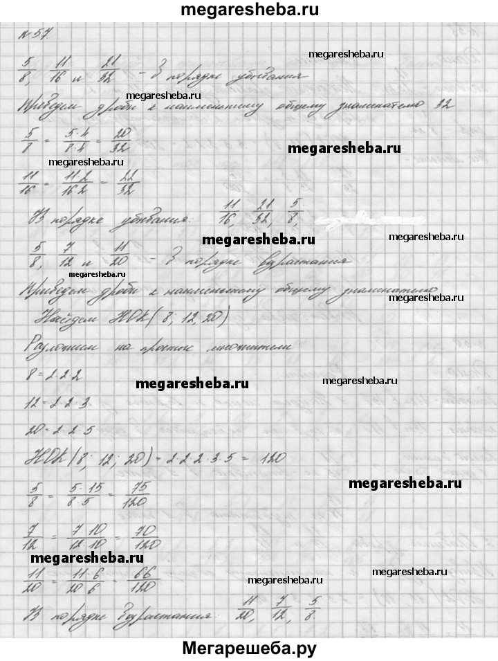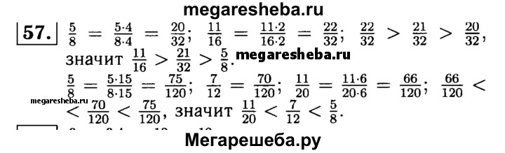 57. Запишите дроби 5/8, 11/16 и 21/32 в порядке убывания, а дроби 5/8, 7/12 и 11/20 в порядке возрастания.