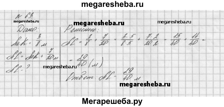 63. Отрезок МК равен 3/8 м, и он короче отрезка АС на 7/20 м. Найдите длину отрезка АС.