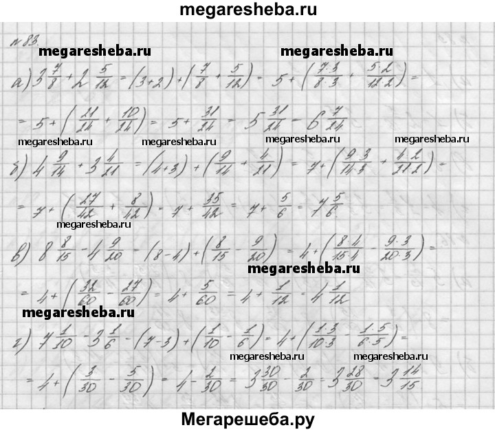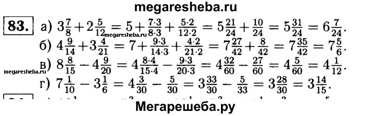 83. Выполните действие: a) 37/8 + 2*5/12; б) 49/14 + 3*4/21; в) 8*8/15 – 4*9/20; г) 7*1/10 – 3*1/6.