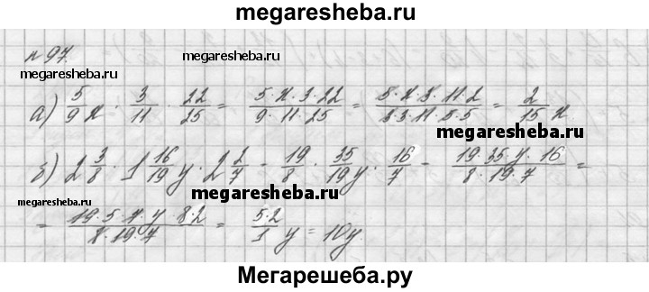 97. Упростите выражение: а) 5/9х * 3/11 * 22/25; б) 2*3/8 * 1*16/19у * 2*2/7.
