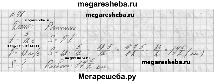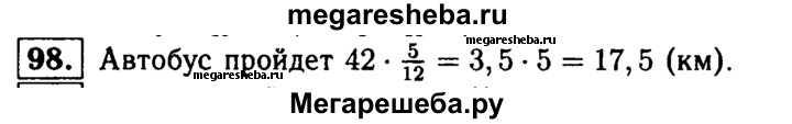 98. Какое расстояние пройдет автобус за 5/12 ч, если его скорость 42 км/ч?