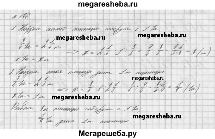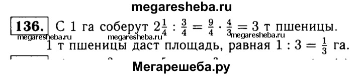 136. С 3/4 га собрали 2*1/4 т пшеницы. Сколько пшеницы соберут при такой урожайности с 1 га? Какая площадь даст 1 т пшеницы?
