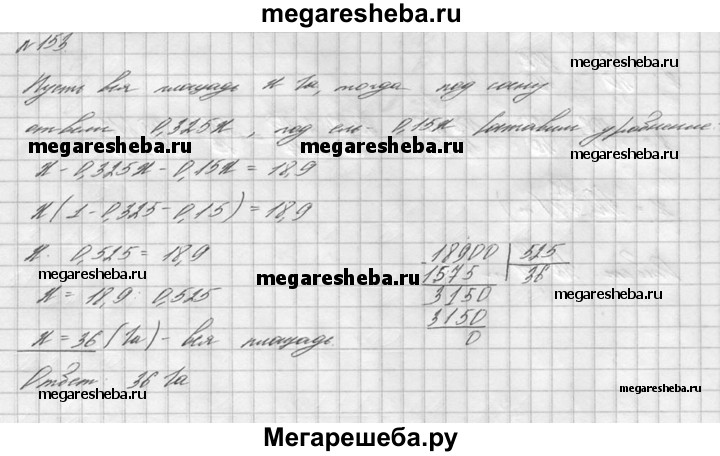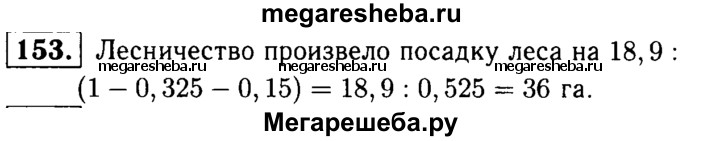 153. Лесничество производило посадку леса. Под сосну отвели 32,5% всей площади, под ель 15% всей площади, а на остальных 18,9 га посадили лиственные деревья. На какой площади лесничество производило посадку леса?