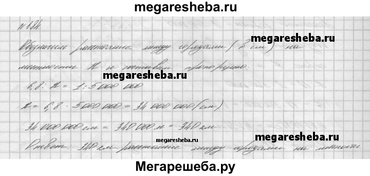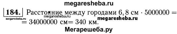 184. Найдите расстояние между городами Барановичи и Гомель, если расстояние между ними на карте 6,8 см и масштаб карты 1: 5 000 000.